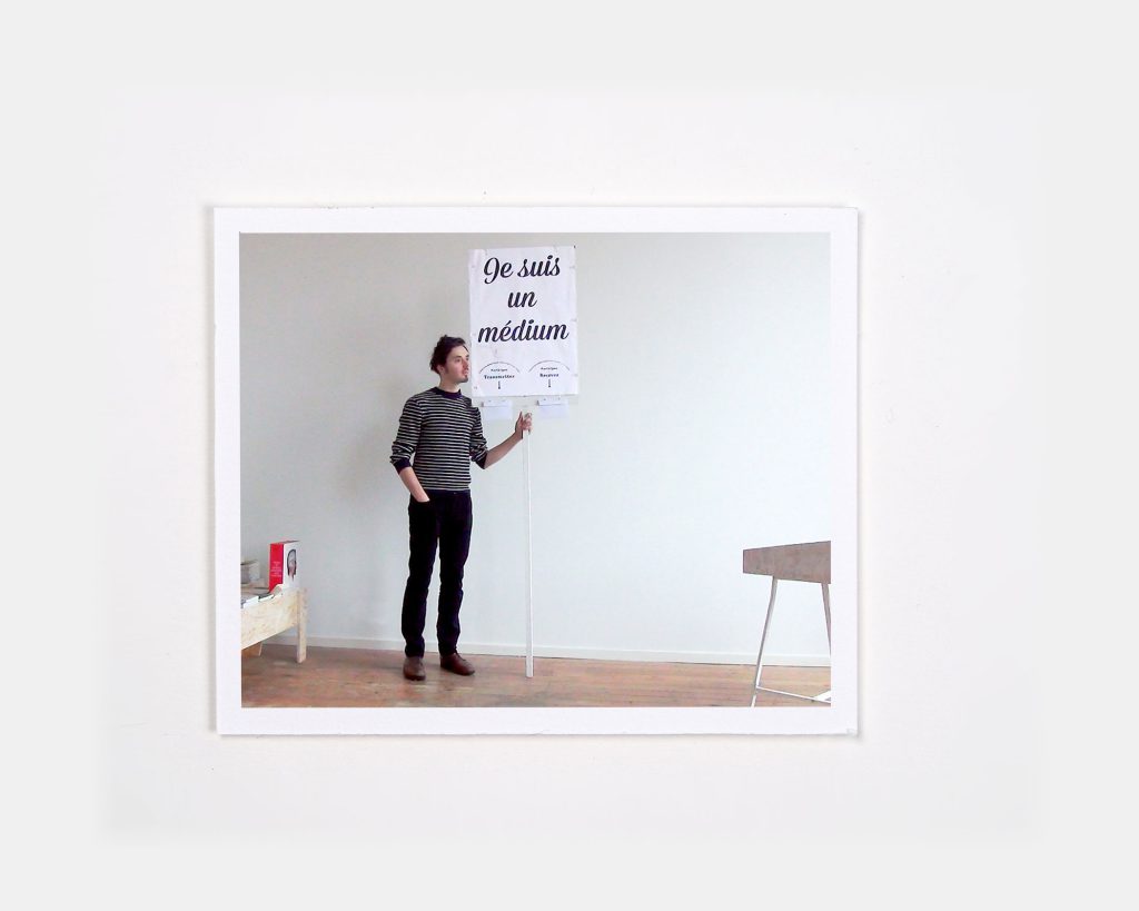 Choisissez un moment impliquant le passage d’un grand nombre de personnes, par exemple une fête. Sur une feuille de papier, écrivez « Je suis un médium ». Sur une feuille de papier à sa gauche, écrivez « Transmettez ». Sur une feuille de papier à sa droite, écrivez « Recevez ».