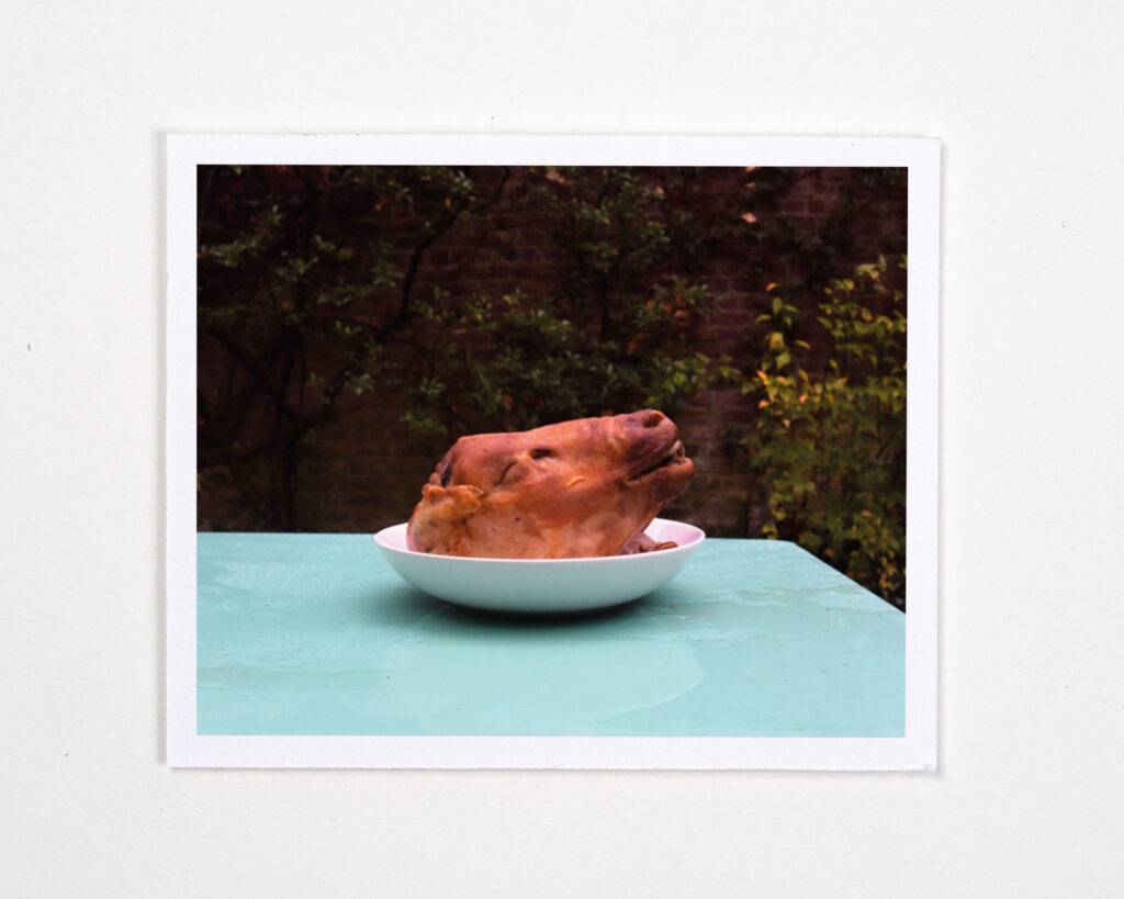 Entre le 14 novembre et le 20 décembre 2015, j’ai invité 76 personnes à visiter une tête d’agneau dans un jardin. Elle coûtait 5 euros au marché. C’était un visage et une oreille : devant, les langues se déliaient. J’ai enregistré les conversations pour les retranscrire. Cette nature, à la fois morte et vivante, se décomposait. Dans un chant collectif, un choeur, la chair s’est transformée en verbe. Une exposition et un premier livret en ont témoigné.