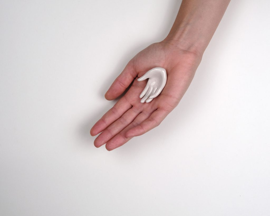 Sculptez une main miniature et placez-la dans votre paume. Proposez à une personne, lorsqu’elle est prête, d’ouvrir votre main pour y trouver la sculpture. Laissez l’action silencieuse.