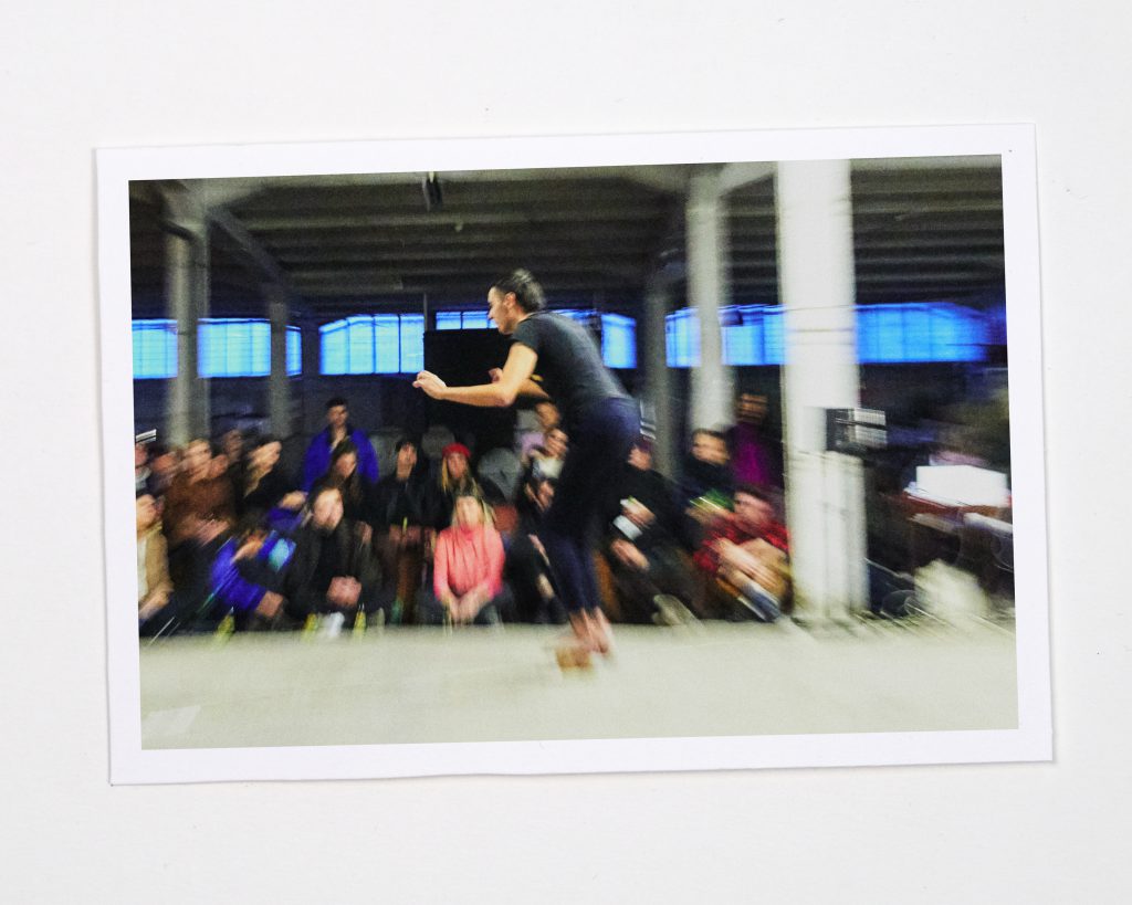En voix off, un texte à propos d’épreuve est illustré par un avancement au ralenti jusqu’à deux blocs de bois. Le corps monte sur les blocs. Dessus, l’équilibre est impossible. Ce que l’on voit, c’est un corps en recherche d’équilibre. Un apprentissage face aux spectateurs. Et une ou plusieurs chutes possibles.